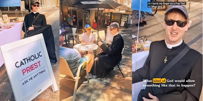 Sam French, australischer Priester und erfolgreicher Influencer, lädt Passanten zu Gesprächen über den Glauben ein.